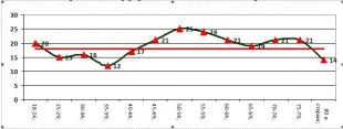 Возрастная дифференциация граждан, твердо противящихся пенсионной реформе, представлена на графике 2.