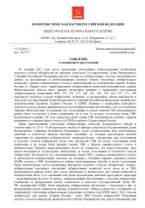 В пачки с избирательными бюллетенями с голосами избирателей, отданными за федеральный список кандидатов в депутаты Государственной Думы ФС РФ, выдвинутый КПРФ, были вброшены избирательные бюллетени с отметками в них за федеральный список кандидатов партии «Единая Россия». Общее количество «уточнений» по одиннадцати участковым избирательным комиссиям составило для КПРФ минус 3812 голосов избирателей, для партии «Единая Россия» - плюс 3809 голосов избирателей!