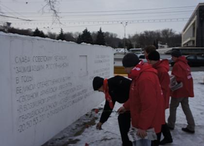 14 февраля 2012 года, в 69-ю годовщину освобождения Ростова-на-Дону от немецко-фашистских захватчиков, около 18.00, депутат Законодательного Собрания Ростовской области, руководитель фракции КПРФ в ЗСРО, секретарь Ростовского обкома КПРФ Бессонов Е.И, доверенное лицоо кандидата в Президенты РФ Зюганова Г.А. – первый секретарь Советского РК КПРФ г. Ростова-на-Дону Кислицына И.И. и секретарь обкома КПРФ Нестеренко И.Н. с группой представителей молодежи Ростова и Ростовской области, комсомольцев и активистов ЛКСМ РФ прибыли на Театральную площадь, чтобы почтить память героев Великой Отечественной войны – освободителей Ростова и возложить красные гвоздики к стеле.