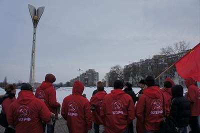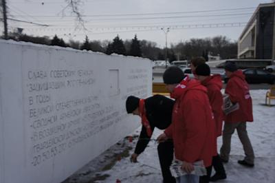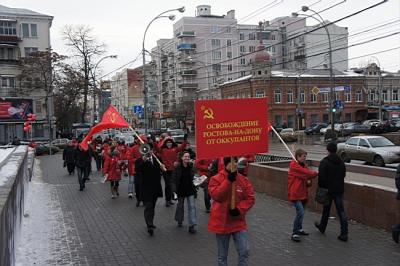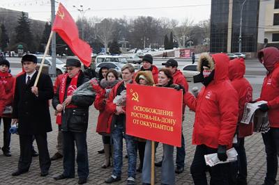 14 февраля 2012 года, в 69-ю годовщину освобождения Ростова-на-Дону от немецко-фашистских захватчиков, около 18.00, депутат Законодательного Собрания Ростовской области, руководитель фракции КПРФ в ЗСРО, секретарь Ростовского обкома КПРФ Бессонов Е.И, доверенное лицоо кандидата в Президенты РФ Зюганова Г.А. – первый секретарь Советского РК КПРФ г. Ростова-на-Дону Кислицына И.И. и секретарь обкома КПРФ Нестеренко И.Н. с группой представителей молодежи Ростова и Ростовской области, комсомольцев и активистов ЛКСМ РФ прибыли на Театральную площадь, чтобы почтить память героев Великой Отечественной войны – освободителей Ростова и возложить красные гвоздики к стеле.