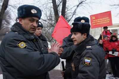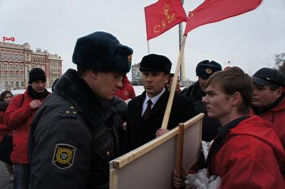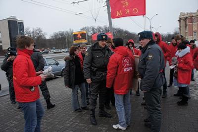И «показали». После возложения цветов группу участников памятной акции перехватили в районе проспекта Театральный выскочившие из шести автомобилей ППС большая группа очень агрессивно настроенных полицейских. Они без объяснений начали хватать, крутить руки, применять удушающие приемы и били дубинками молодых людей, в том числе и девушек, пытаясь затащить их в автомобили. Секретарю ОК КПРФ Нестеренко И.Н., снимавшего на видеокамеру всю торжественную акцию и полицейский беспредел, накинувшиеся полицейские разбили лицо, вырвали видеокамеру. Ушибы ребер, порванная одежда молодежи, синяки и ссадины, разорванные и испачканные газеты – вот итог «геройства» современных полицаев. На резонное замечание Кислициной И.И., что она доверенное лицо кандидата в Президенты РФ Зюганова Г.А. и находится под защитой Закона, сатрапы нагло заявили, что им все равно, кого заталкивать в полицейские воронки…