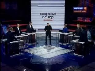 Ведущий: Здравствуйте. Это программа "Воскресный вечер" и я, Владимир Соловьев. Мы обсуждаем актуальные события недели с теми, кто делает политику, на политику влияет, и с теми, у кого есть свой, особый взгляд на происходящее. Чиновников ударили по расходам. Им придется признаться, откуда деньги на роскошную жизнь. Миллионер стал лидером, ради большой политики Прохоров расстался с бизнесом. Нас научат Родину любить. Станет ли патриотизм модным? Эти темы обсуждались на этой неделе. О них и подискутируем.