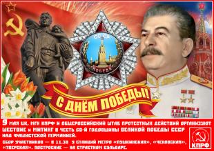 9 мая, в 12:00 ЦК, МГК КПРФ и Общероссийский штаб протестных действий организуют шествие и митинг в честь 68-й годовщины Великой Победы СССР над фашистской Германией.