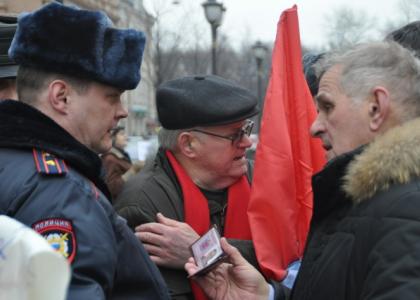 Особо циничным выглядит момент задержания коммуниста Богачева. Ретивый майор полиции подскочил к нему и вопросил: «А вы не инвалид, не блокадник, не узник фашистских концлагерей?». Получив отрицательный ответ, майор потащил коммуниста в полицейскую машину.