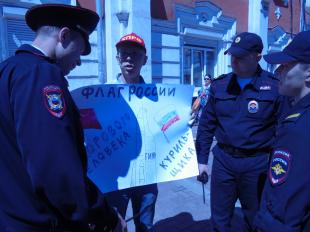Очевидно, вознамерившись проявить перед очами губернатора особо ревностное отношение к службе, «держиморды» окружили нас плотным кольцом и потребовали свернуть плакаты. На закономерный вопрос «на каком основании?» ответили с восхитительной честностью и прямотой: «на основании приказа старшего».