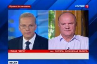 Председатель ЦК КПРФ Г.А.Зюганов прокомментировал в прямом эфире программы "Вести" (Россия-1) решение киевской хунты об уголовном преследовании ряда федеральных российских политиков.