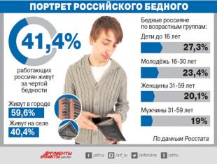 300 тыс. россиян в этом году шагнули за черту бедности, говорит Росстат. Всего таких в стране сегодня почти 20 млн. Эксперты же утверждают, что бедняком можно назвать каждого 3-го жителя России. Росстат отмерил черту бедности в 7915 руб. среднедушевого месячного дохода. Но социологи говорят: даже если среднедушевой доход в 1,5-2 раза выше прожиточного минимума, этот человек тоже бедный.