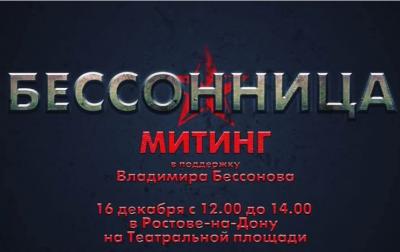 Товарищи! 16 декабря с 12.00 до 14.00 в Ростове-на-Дону на Театральной площади состоится митинг против незаконного преследования депутата Государственной Думы, коммуниста Владимира Ивановича Бессонова.