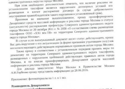 информации и рекламы Ивана Шубина префекту САО Владиславу Базанчуку, в котором