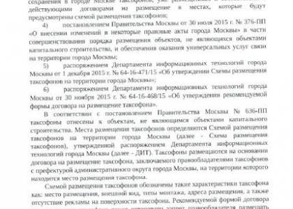 Как пояснила «XXIвек - ТВ», таксофоны «Народный телефон» сданы как сеть связи в Роскомндазор соответствующим актом. Лицензия на оказание услуг связи компании выдана в 2012 году. В соответствии с городским законодательством и положением о префектурах административных округов, полномочия в сфере связи не относятся к ведению префектуры и отнесены к функционалу Департамента информационных технологий города Москвы. В связи с этим компания намерена в судебном порядке признать действия Префектуры противоправными и выходящими за пределы полномочий. Запросы по этой ситуации в различные ведомства направил депутат Госдумы, первый секретарь МГК КПРФ Валерий Рашкин, однако ответов пока нет.