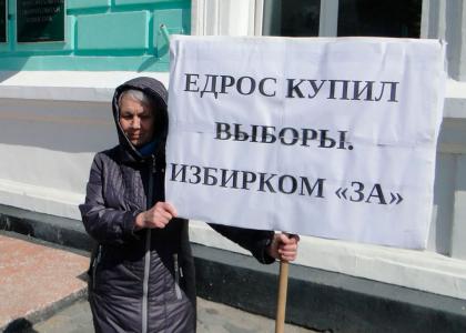 В столице Амурской области 16 апреля началась бессрочная акция протеста несогласных с результатами дополнительных выборов депутата Законодательного Собрания. С 11 часов активисты Благовещенского отделения КПРФ по очереди выходили на одиночный пикет к зданию городской администрации, где располагается избирательная комиссия, и поочередно меняли друг друга. В руках они держали плакат: «Едрос купил выборы. Избирком «за».