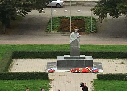 В настоящий момент Павел Николаевич проводит пресс-конференцию напротив областной администрации - у памятника партизану - Герою Советского Союза Лёне Голикову.