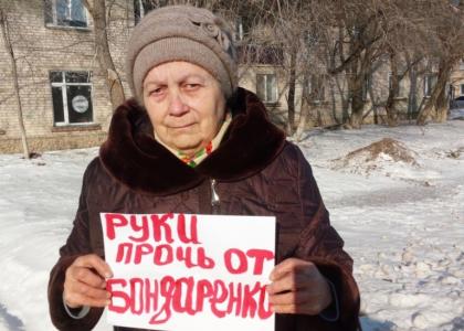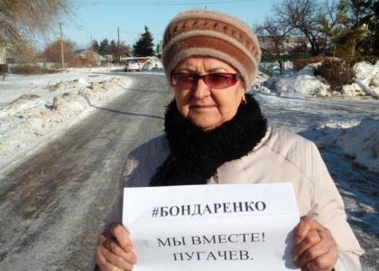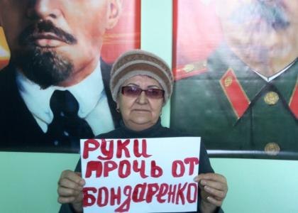 Активисты Пугачевского местного отделения КПРФ протестуют против задержания полицией депутата-коммуниста Николая Бондаренко.