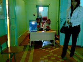 Голосование по выбору символа Олимпиады-2014 на входе в избирательные участки 43-08 и 43-59 (общий вход).