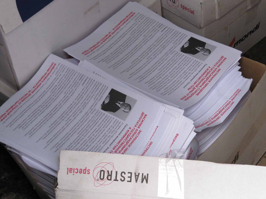 28 февраля, в 11-00, представителями политических партий КПРФ и ЛДПР было установлено место складирования незаконной агитационной печатной продукции без выходных данных. Общий тираж фальшивых листовок, содержащих несуществующее обращение депутата Государственной Думы В.А. Стародубцева против КПРФ, составил около 200 тыс. экземпляров. Здесь же находилась группа молодежи на легковых автомобилях, готовившаяся распространять нелегальную агитационную продукцию.