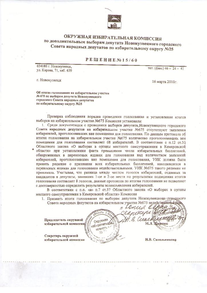 Решение окружной избирательной комиссии по дополнительным выборам депутата Новокузнецкого городского Совета народных депутатов по избирательному округу № 25 стало качественно новой вехой в истории кузбасского беспредела на выборах всех уровней и технологий получения желаемого властью результата.
