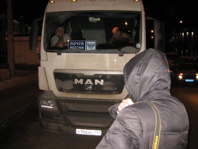 Фура, на которой очевидно пришел тираж. Отстаивалась во дворах, пока коммунисты "атаковали" ложную цель у Почтамта.