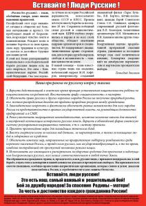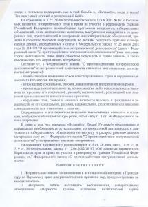 «В связи с тем, - говорится в постановлении, - что материал «Вставайте! Люди Русские!» обосновывает и оправдывает необходимость осуществления экстремистской деятельности, в деятельности избирательного объединения по выпуску и распространению данного материала в силу ст. 1 Федерального закона «О противодействии экстремистской деятельности» усматриваются признаки экстремизма».