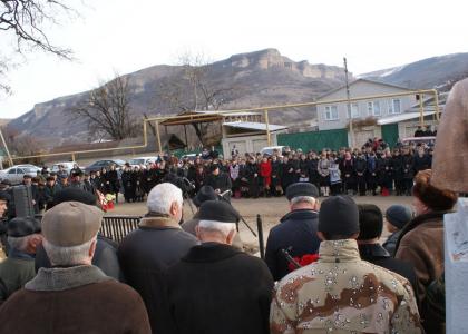На митинге, который открыл и вел первый секретарь Хабезского райкома КПРФ О.А. Аргунов, звучали взволнованные речи земляков, выступил лидер коммунистов Карачаево-Черкесии И.А-Г. Биджев. Надолго запомнятся участникам митинга, среди которых были односельчане, аксакалы аула, школьники выступления секретаря комсомольской организации Алибердуковской средней школы Дины Джамбековой и шестиклассника из Черкесска, сына погибшего милиционера Арсена Кушхова. Их выступления прозвучали как клятва героям-комсомольцам продолжать дело борьбы за справедливость и народное счастье.