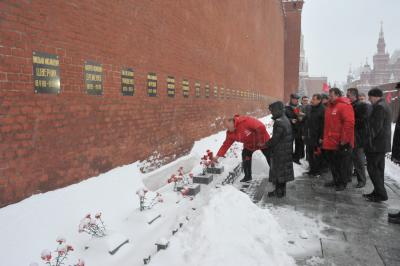 Цветы были также возложены к Мавзолею В.И. Ленина, захоронениям выдающихся деятелей Советской эпохи и памятнику маршалу Г.К. Жукову.