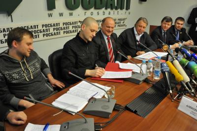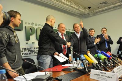 17 января в информационном агентстве «Росбалт» состоялась пресс-конференция лидера КПРФ Г.А. Зюганова. В ходе мероприятия было подписано соглашение о сотрудничестве между Общественным советом в поддержку кандидата на должность президента России Г.А. Зюганова и организацией «Левый фронт», возглавляемой Сергеем Удальцовым.