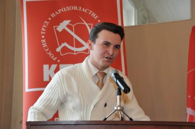 Кандидата в Президенты Г.А. Зюганова представил секретарь ЦК КПРФ, первый секретарь ЛКСМ, депутат Госдумы Ю.В. Афонин.