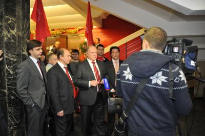 Председатель ЦК КПРФ, кандидат в Президенты России Г.А. Зюганов в своем выступлении рассказал об итогах двадцатилетия правления олигархии в стране, а также внес свои предложения, касающиеся необходимости немедленного формирования коалиционного правительства Народного доверия.