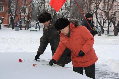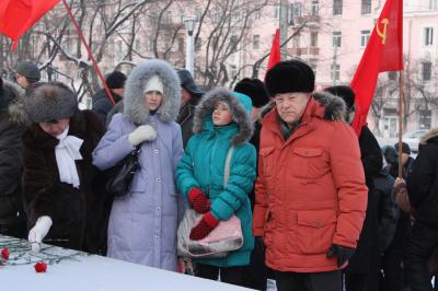 После торжественного возложения цветов перед собравшимися выступил первый секретарь Хабаровского краевого комитета КПРФ, депутат, руководитель фракции КПРФ в Законодательной Думе Хабаровского края Анатолий Иванович Дронченко. Он напомнил о том, что Ленин создал для трудящихся собственное государство, которое смогло выстоять в Гражданской и Великой Отечественной войнах, о том, что Советский Союз был сильнейшей в мире социалистической страной. Сегодня же мы, коммунисты, их сторонники, должны объединить вокруг идей Ленина, вокруг нашего лидера Геннадия Андреевича Зюганова, всех наших соотечественников и, выиграв президентские выборы, начать вновь строить социализм.