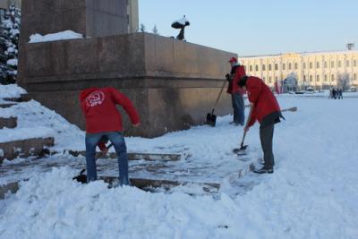20 января молодые коммунисты края провели субботник по уборке снега у памятника Владимиру Ильичу. Сегодня, 21 января в 11-00, у его подножия состоится митинг ко дню смерти вождя.