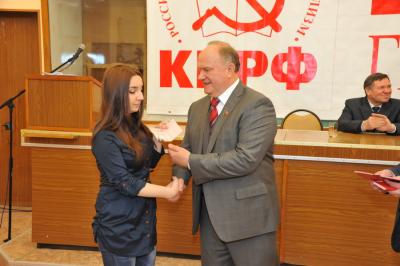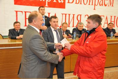 Завершилась рабочая поездка Г.А. Зюганова встречей с партийным активом Новомосковска. Ее открыл член Президиума, секретарь ЦК КПРФ, первый секретарь Тульского обкома КПРФ Ю.В. Афонин. Прежде всего участники встречи почтили минутой молчания память выдающегося коммуниста и патриота В.А. Стародубцева. Затем Ю.В. Афонин рассказал о тех мероприятиях, которые готовят тульские коммунисты для увековечивания заслуг Василия Александровича. Среди них учреждение 50 стипендий имени Стародубцева для лучших студентов Тульской области. Кроме того, 21 января в Новомосковске прошел «стародубцевский призыв» в КПРФ, в ходе которого партийные билеты были вручены большой группе молодых людей. Продолжая традицию, Г.А. Зюганов вручил на встрече комсомольские билеты вновь принятым в ряды ЛКСМ товарищам.