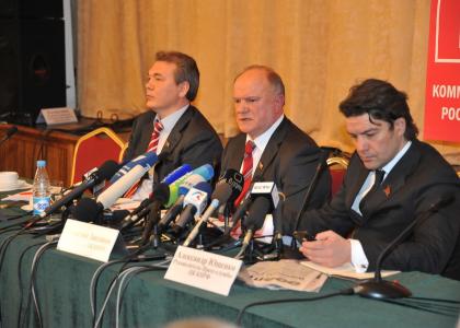 В пресс-конференции приняли участие член Президиума, секретарь ЦК КПРФ, первый заместитель Председателя Комитета Госдумы по международным делам Л.И. Калашников и руководитель Пресс-службы ЦК КПРФ, депутат Государственной Думы А.А. Ющенко.