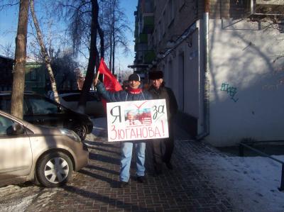 Акция в поддержку кандидата в Президенты от КПРФ Г.А. Зюганова представляля собой серию одиночных пикетов с использованием своеобразного агитплаката с лозунгом «Я – за Зюганова!» и ярко-красного флага КПРФ.