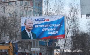 Город переполнен изображениями премьера, Путин сурово взирает на избирателей с рекламных щитов чуть ли не на каждой улице Новосибирска, хотя штабисты уверяли, что «в каждом городе планировалось использовать 1-2 брандмауэра и порядка 10 стандартных баннеров». В Новосибирске планы по наружной рекламе премьера явно перевыполнены.