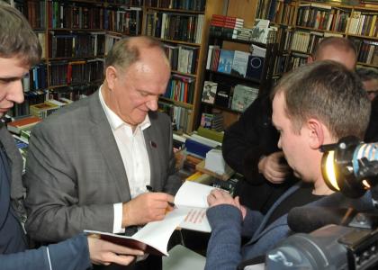 В небольшом книжном магазине, где ради встречи прилавки сдвинули в сторону, где никуда не денешься от запаха новеньких книг, собрались стопроцентно творческие люди: литературные бунтари, блогеры, начинающие и уже зарекомендовавшие себя писатели. Это был скорее диалог, где никто не стеснялся высказывать свое мнение, каждое выступление воспринимали уважительно. «Я люблю такие «непричесанные» встречи. Они заряжают свежестью и легкостью», - уже после признался Г.А. Зюганов.
