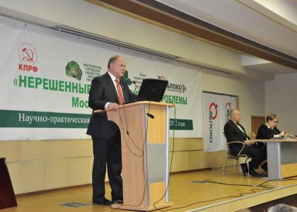 21 февраля в Москве, в концертном зале «Измайлово» состоялась научно-практическая конференция на тему: «Нерешенные экологические проблемы Москвы и Подмосковья». Мероприятие было организовано при поддержке Компартии. С приветственным словом к участникам конференции обратился Председатель ЦК КПРФ, кандидат в Президенты РФ Г.А. Зюганов.