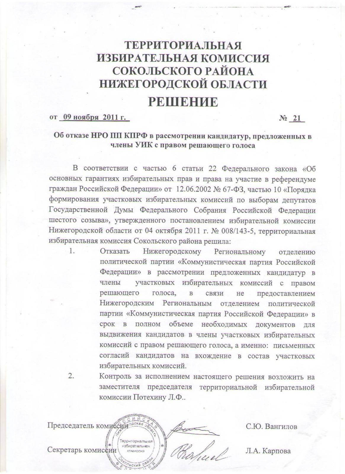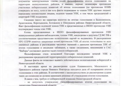 Направляем сканированные копии обращений НРО КПРФ в Избирательную комиссию области, областную и Генеральную прокуратуру, Следственный комитет и копии полученных ответов. «Мы заверяем наших избирателей, что доведем начатое разбирательство по фактам массовых и грубых нарушений конституционных прав граждан Нижегородской области до конца и добьёмся наказания виновных», - подчеркнул В. Егоров.