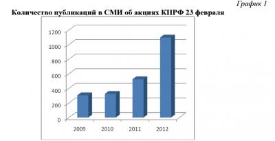 Как можно видеть из графика 1, празднование КПРФ 23 февраля освещается СМИ значительно больше, чем в прошлые годы.