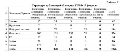 Масс-медийная структура публикаций об акциях КПРФ 23 февраля