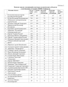 Контент-анализ упоминаний различных политических субъектов в публикациях о митингах коммунистов, дан табл.3.