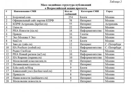 Структура публикаций о протестных мероприятиях приведена в таблице 1.