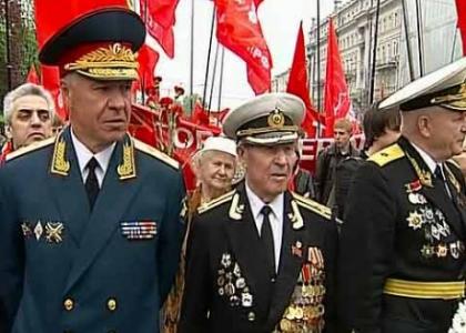 В акции приняли участие и ветераны Великой Отечественной. Более 3,5 тысяч сторонников партии собрались на Пушкинской площади и колонной двинулись по Тверской улице.