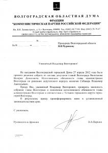 Лидер думских коммунистов Николай Паршин обратился в прокуратуру Волгоградской области с просьбой дать правовую оценку избранию главы Волгограда и назначению исполняющего обязанности главы администрации Волгограда. Парламентарий просит прокурора Владимира Чурикова пояснить, соответствуют ли сегодняшнему Уставу города-героя избрание и назначение, которые состоялись 27 апреля.