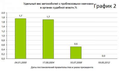 А вот представителям судебной «власти» повезло меньше. В общем числе «мигалок» им ранее доставалось от 1,7% до 0,5% от всех современных «пурпурных тог». А теперь – ничего. Иными словами, по нынешним бюрократическим понятиям, судебная власть с 1 июля 2012 г. перестает быть сколько-нибудь реальной властью.