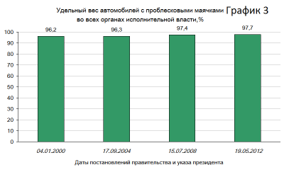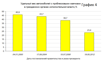 Власти попытались привлечь внимание общественности к факту т.н. «снижения» числа автомобилей с «мигалками». В действительности же теперешнее их число (569) лишь приблизилось к их числу 15-летней давности (по постановлению правительства от 4 февраля 1997 г. их было 560).