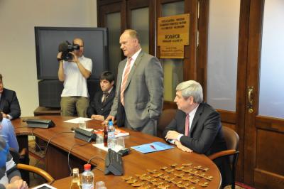 24 мая в Государственной Думе в холле фракции КПРФ Председатель ЦК КПРФ Г.А. Зюганов встретился с членами спортивного клуба КПРФ. В мероприятии также принял участие первый заместитель Председателя ЦК КПРФ И.И. Мельников.