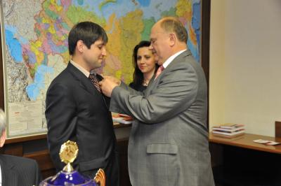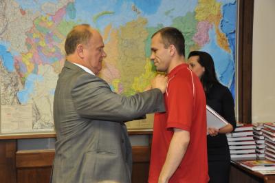 Г.А. Зюганов наградил памятной медалью ЦК КПРФ «100 лет газете «Правда»» большую группу спортсменов. Спортсменам также были вручены ценные книги.
