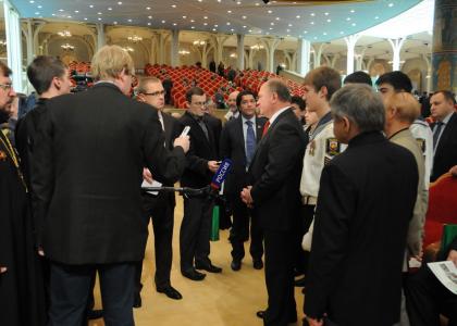 Лидер российских коммунистов также отметил, что осуществляется накат на нашу культуру, язык, вероисповедование и традиции. «Народы пытаются столкнуть на религиозные конфликты, которых в тысячелетней истории России никогда не было», - подчеркнул Г.А. Зюганов.
