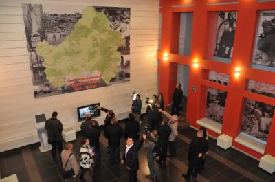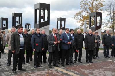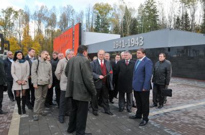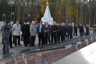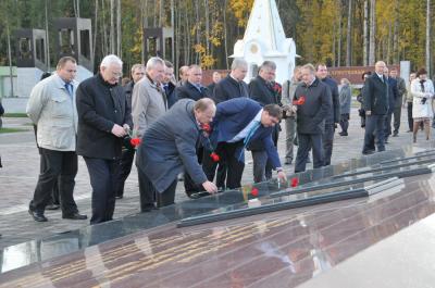 Геннадий Андреевич возложил цветы к братской могиле и посетил музей памяти всех сожженных деревень России. Г.А. Зюганов и В.В. Потомский оставили запись в книге почетных посетителей мемориала и почтили память павших минутой молчания.