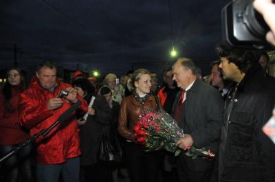 Вечером 9 октября на вокзале лидера КПРФ встретили брянские коммунисты и комсомольцы. Г.А. Зюганову были вручены традиционные хлеб-соль.