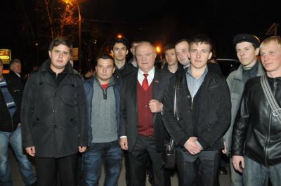 По доброй традиции Г.А. Зюганов прямо на сцене вручил партийные и комсомольские билеты большой группе вновь принятых в партию и комсомол товарищей. Затем лидер КПРФ обратился к избирателям Брянщины.